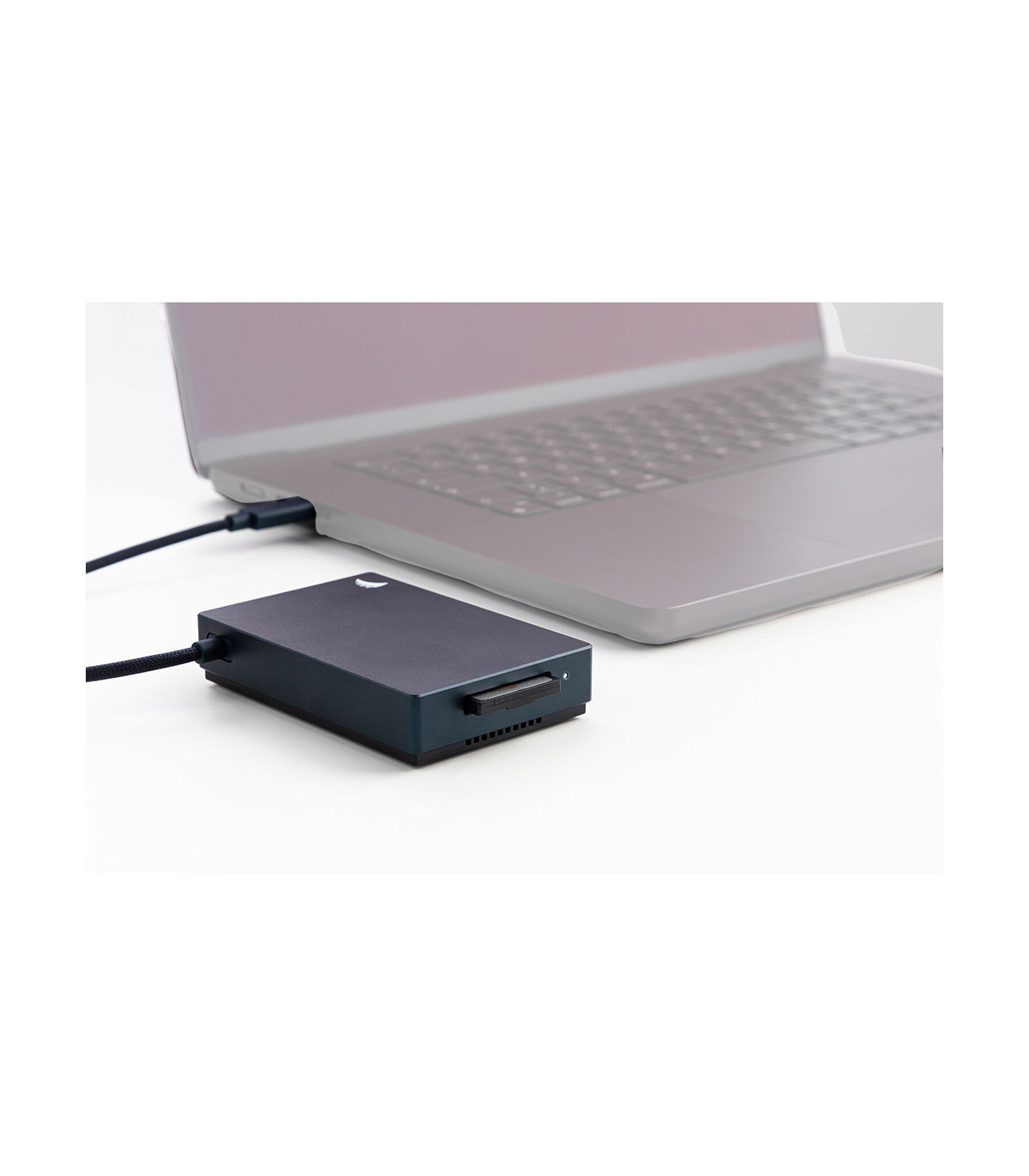 Le lecteur est alimenté par bus et se connecte nativement via USB-C à tous les systèmes d'exploitation modernes (macOS, Windows, Linux, iPadOS). Sa rétrocompatibilité lui permet de fonctionner sur des ports plus lents, tout en signalant la vitesse maximale atteinte grâce à son indicateur LED intégré : une lumière Blanche confirmant la connexion USB 4.0 (40 Gb/s), et Bleue pour l'USB 3.2 (20 Gb/s). Cet outil d'ingénierie est l'allié idéal de tout professionnel cherchant à maximiser le rendement de son temps en post-production.