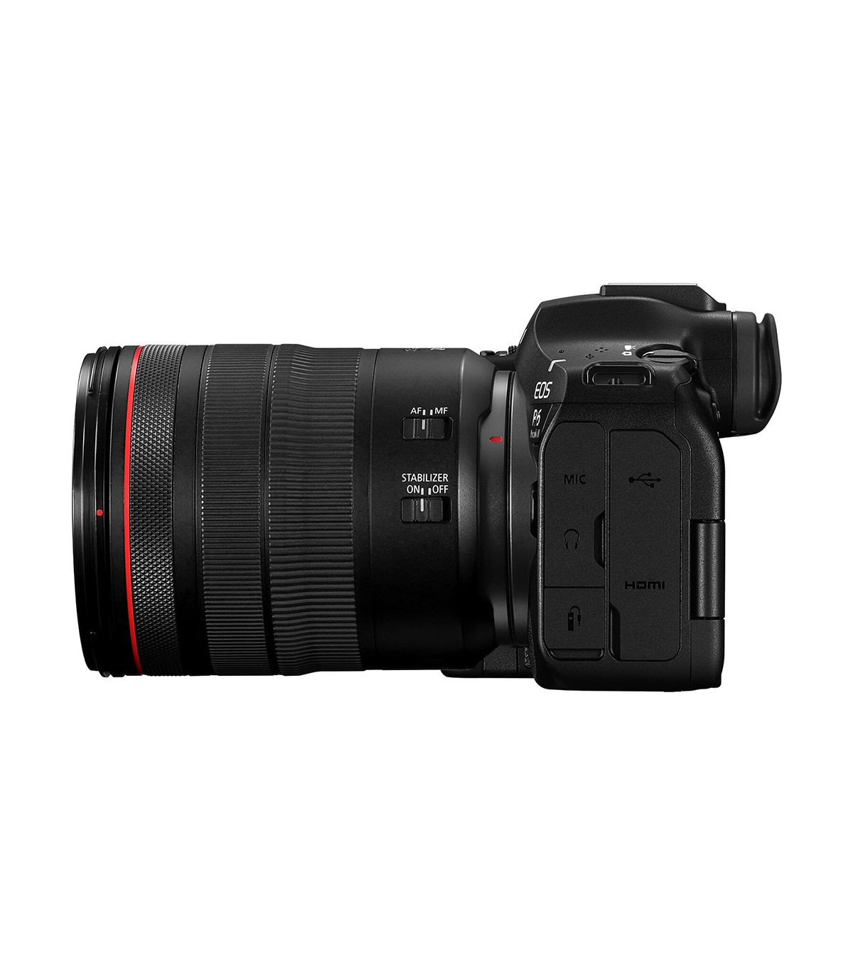 Le boîtier est couplé à l'objectif de référence Canon RF 24-105mm f/4 L IS USM, un zoom polyvalent Série L reconnu pour sa qualité optique et sa construction robuste, résistante à la poussière et à l'humidité. Son ouverture constante f/4 garantit une exposition uniforme sur toute la plage focale. La mise au point est gérée par le moteur Nano USM, rapide, précis et silencieux pour la capture vidéo.