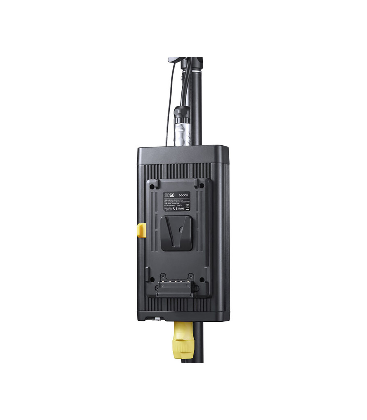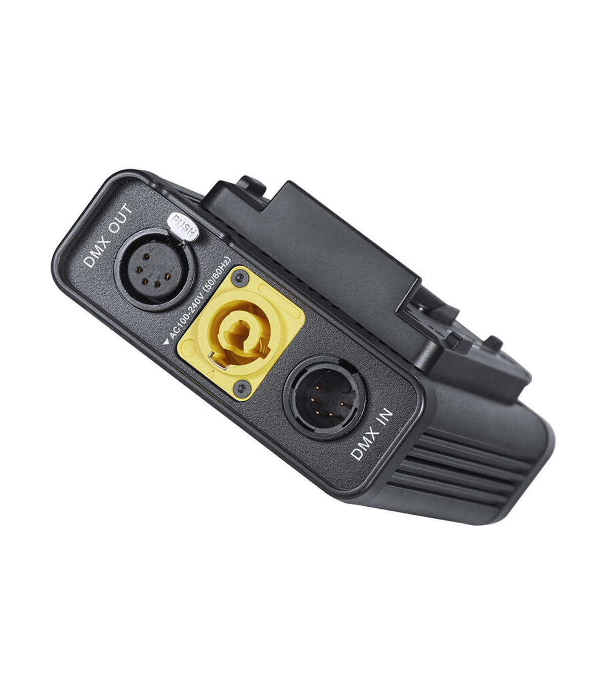 Son boîtier de contrôle séparé permet d'alimenter la torche via le secteur (AC) ou via une batterie V-Mount (non incluse), rendant ce projecteur aussi à l'aise en studio qu'en extérieur.