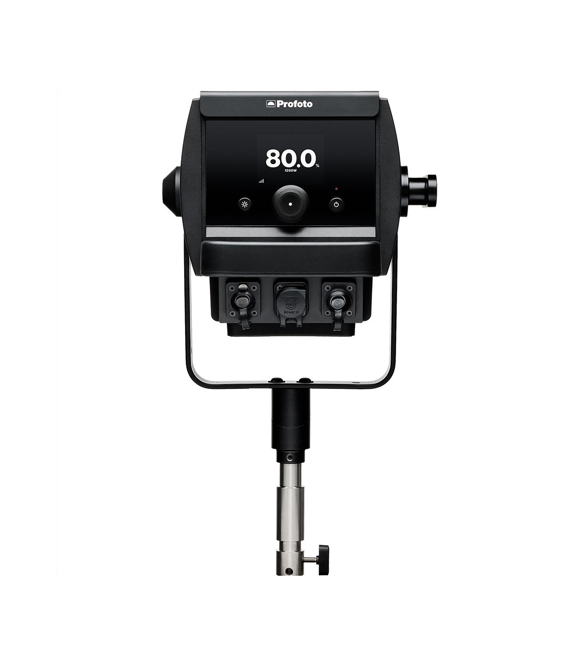 L'interface utilisateur a été pensée pour la rapidité d'exécution. Un grand écran arrière offre une lisibilité immédiate des réglages. Que vous soyez seul ou en équipe sur un plateau complexe, le pilotage est flexible : contrôlez l'unité manuellement, via l'application Profoto Control, ou intégrez-la dans une console via DMX/RDM et LumenRadio (CRMX) intégré.