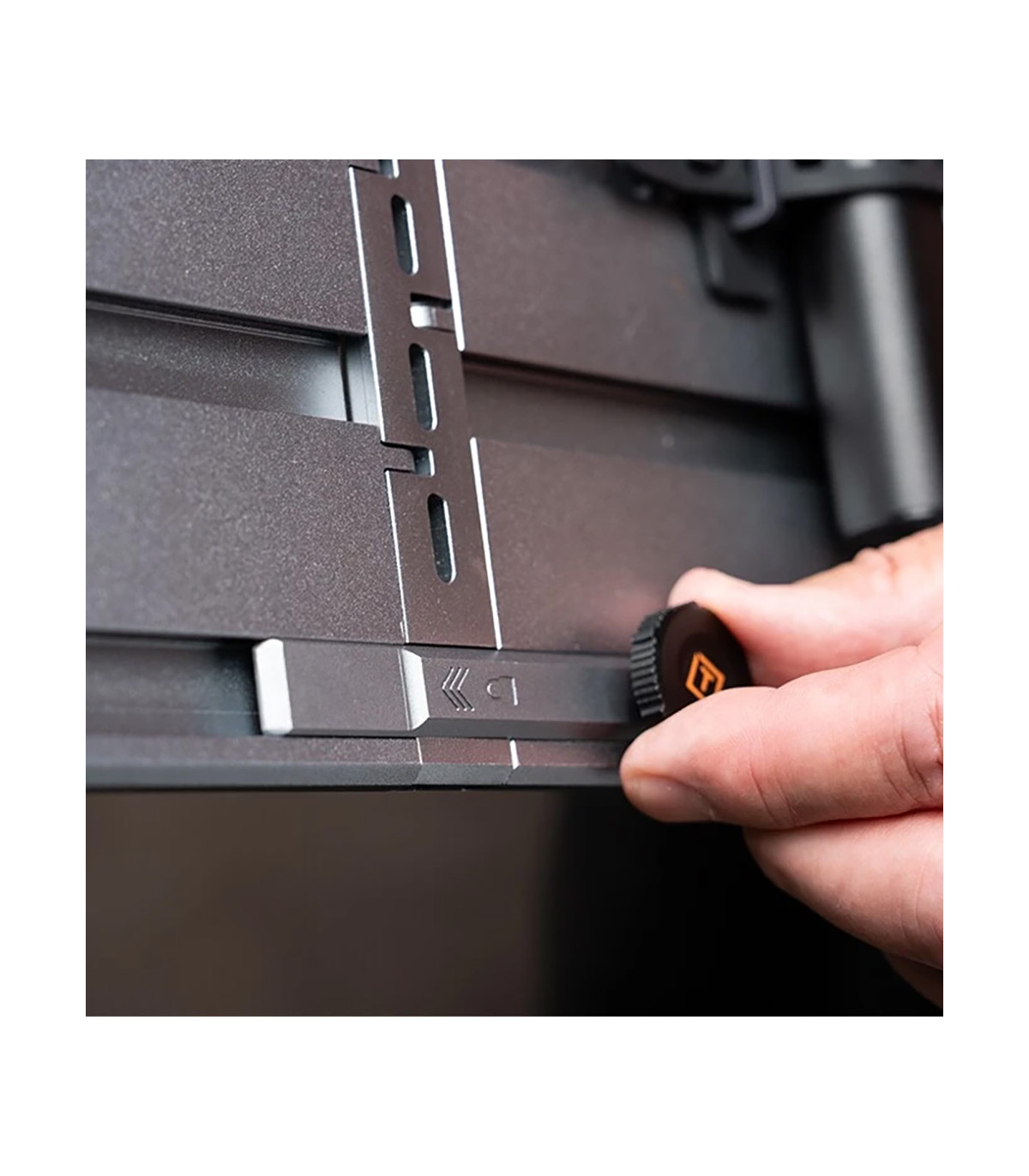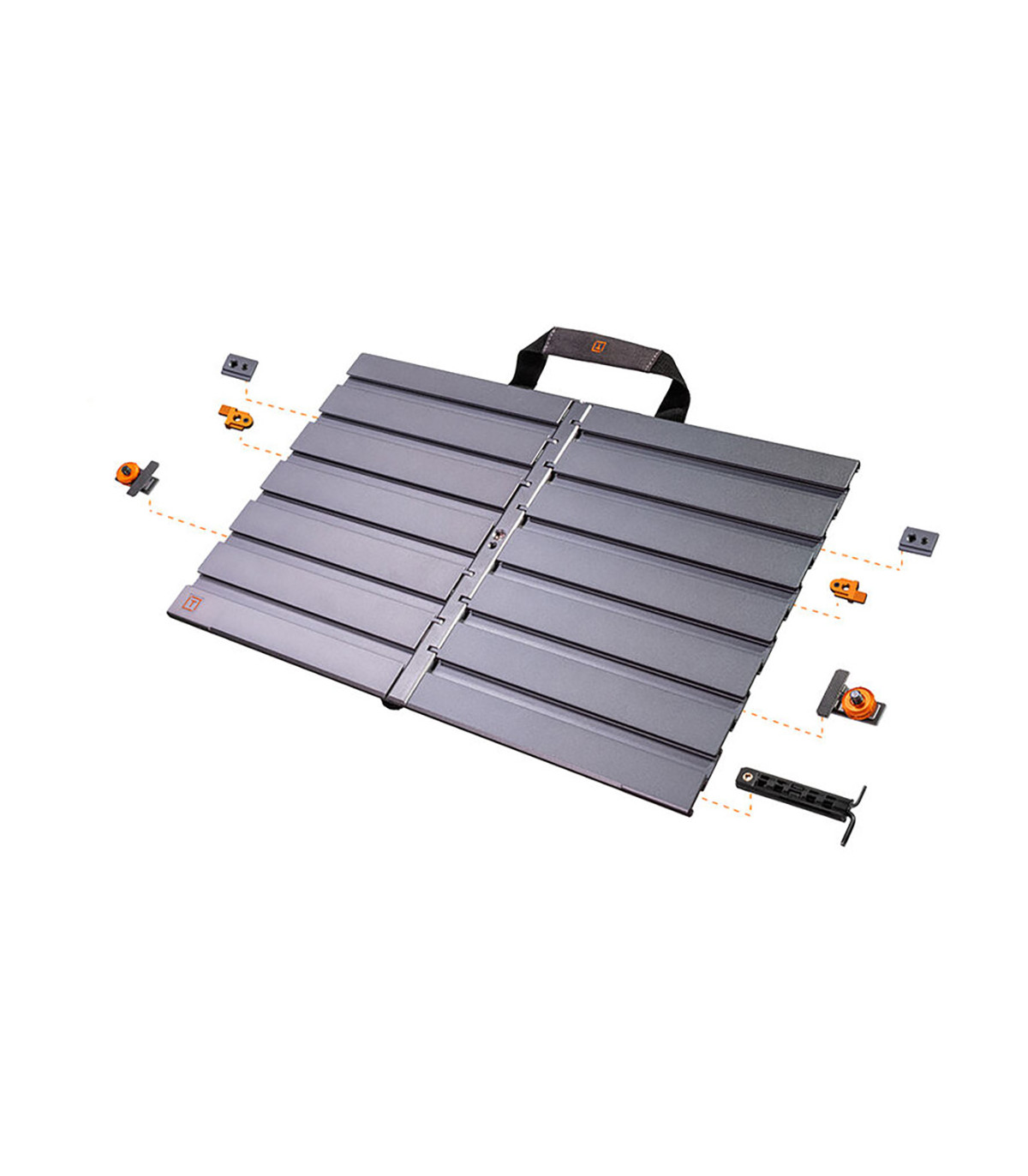 • Architecture modulaire "Track System" : Oubliez le velcro. Le système de rails innovant permet de fixer des accessoires (disques durs, batteries, téléphones) dessus ou dessous le plateau pour un espace de travail net et sans câbles pendants.