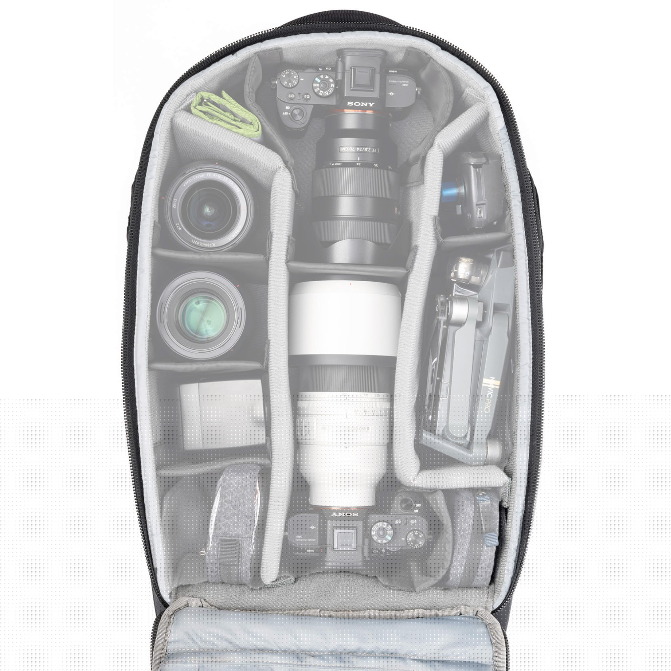 • Capacité "Shooting Ready" : Peut accueillir jusqu'à 2 boîtiers standards, 4 à 6 objectifs (jusqu'au 70-200mm f/2.8 monté) et un ordinateur portable 16 pouces dans un compartiment dédié.