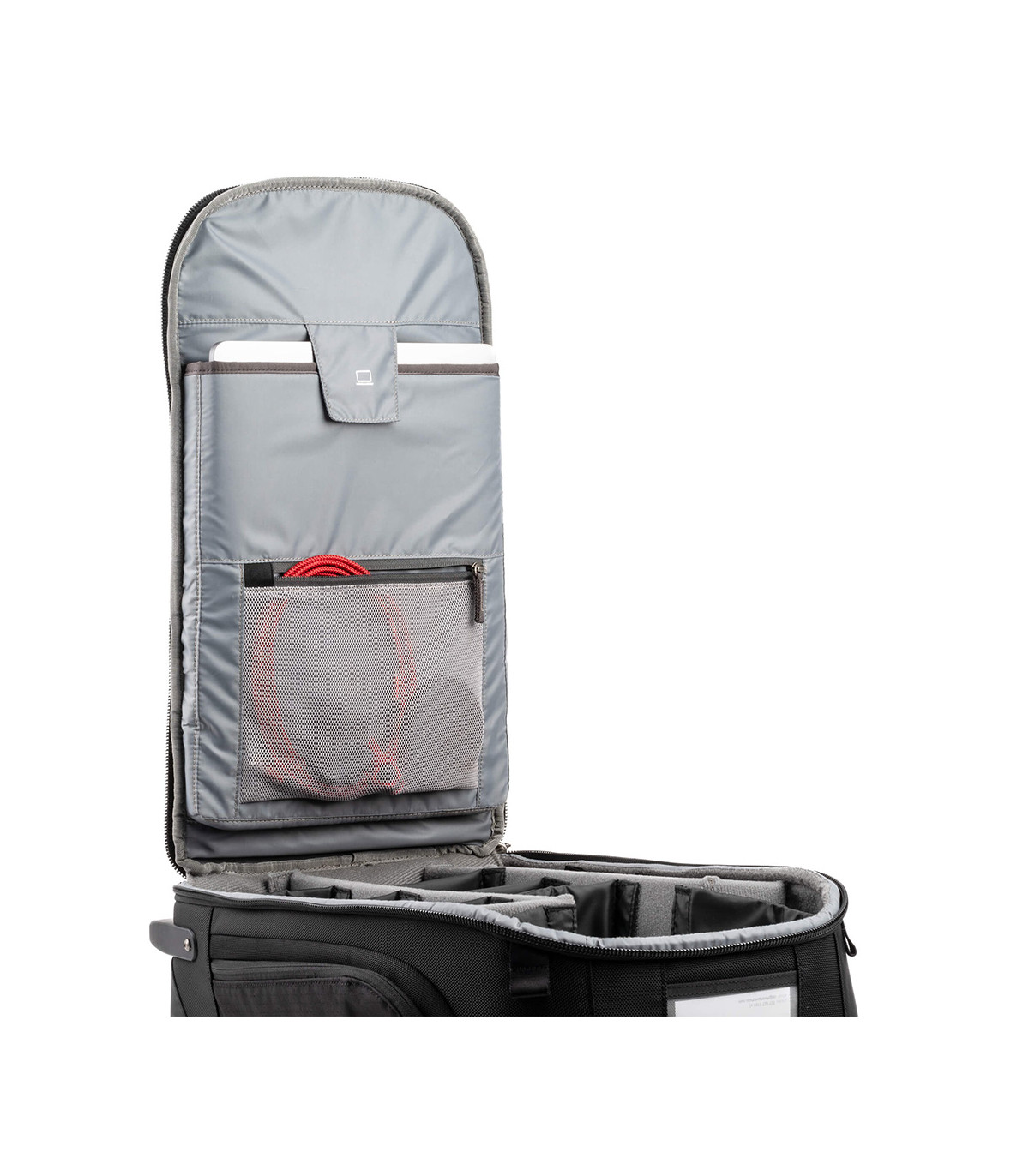 Ce modèle récent ne se contente pas d'ajouter des roues à un sac. Il propose une architecture intelligente. L'ouverture totale du panneau avant offre un accès immédiat à l'ensemble de votre équipement. Les diviseurs en mousse à cellules fermées sont entièrement modulables, vous permettant de sécuriser deux boîtiers (type Sony A7, Canon R5 ou Nikon Z8) et une optique longue telle qu'un 70-200mm f/2.8 attachée, prête à shooter.